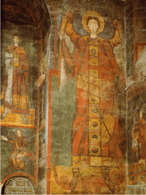 Na tradição religiosa da Europa o culto a Micael foi representado nos afrescos que coloriam as grossas paredes de algumas igrejas românicas do século X . Em uma época em que as artes plásticas expressavam o auge da alma da fé e a verdade estava associada com o sentimento, o homem medieval ainda conseguia abarcar no íntimo a influência de forças suprasensoriais no seu desenvolvimento pessoal.