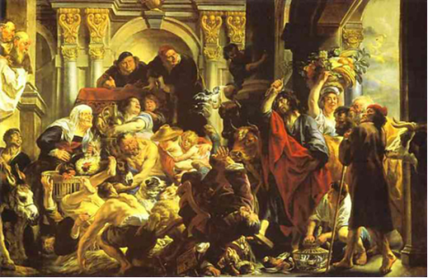 A purificação do Templo 1650 – Jacob Joardaens – Louvre 288 X 436 cms